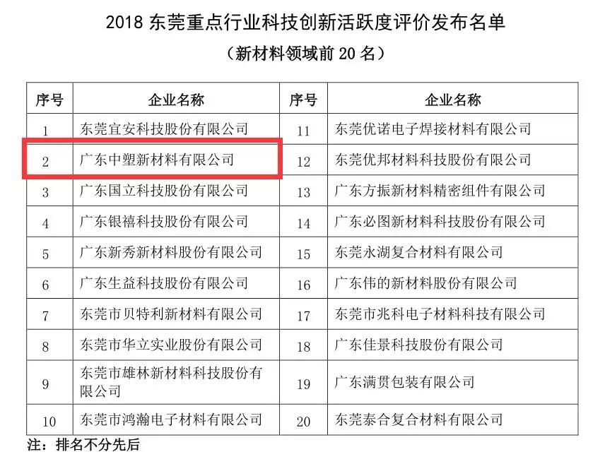 9170金沙新质料依附多年来一连的立异能力,,,,获评“2018东莞重点行业科技立异活跃度20强”(排名不分先后)。。。。。
